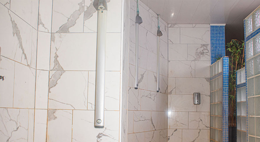 Derrière un mur de verre à la transparence troublante, des corps s’agitent sous les jets des douches collectives tandis que vous vous détendez dans le spa ou la piscine, attendant le surgissement d’un torse aux pectoraux avantageux et ruisselant, sur lequel vous poserez peut-être votre tête un peu plus tard.